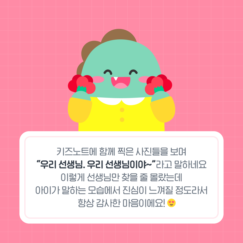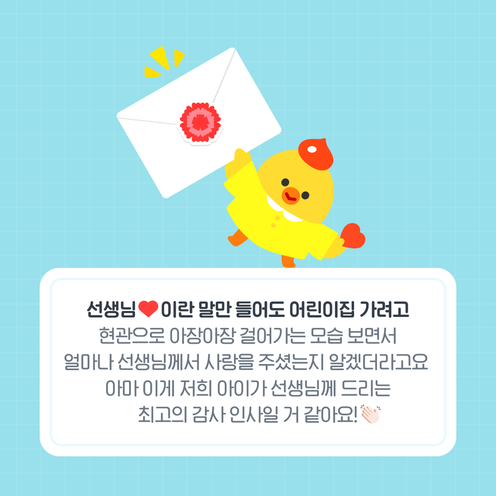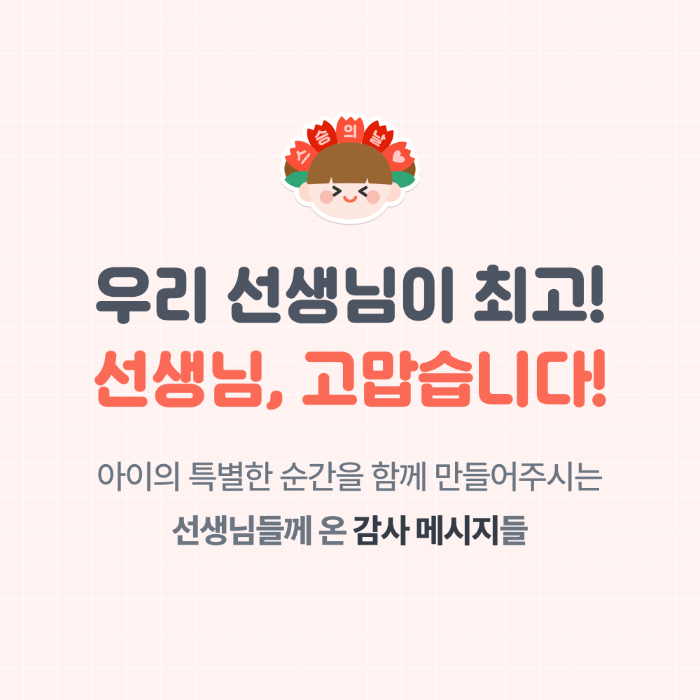 매일 우리 아이들에게 특별한 순간을 함께 만들어 주시는 선생님들께 오늘 꼭 전해드립니다.