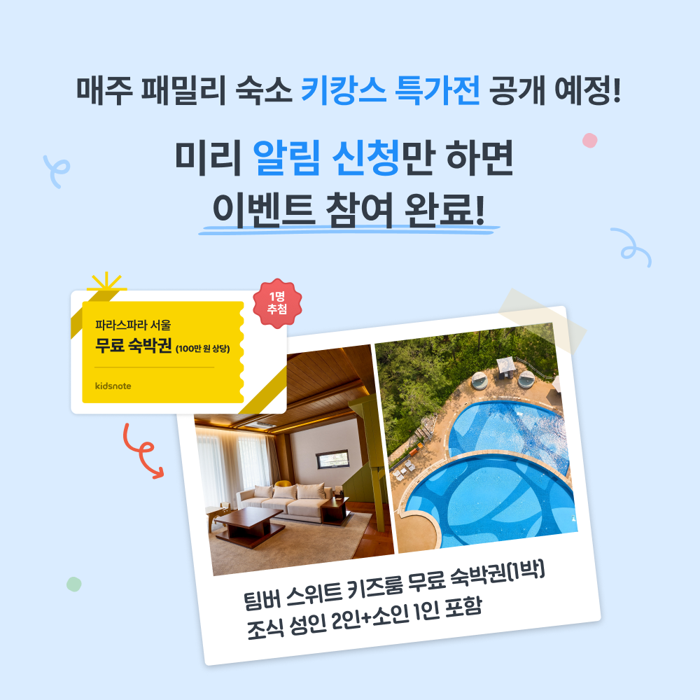 키즈노트 패밀리 숙소 오픈 알림 이벤트