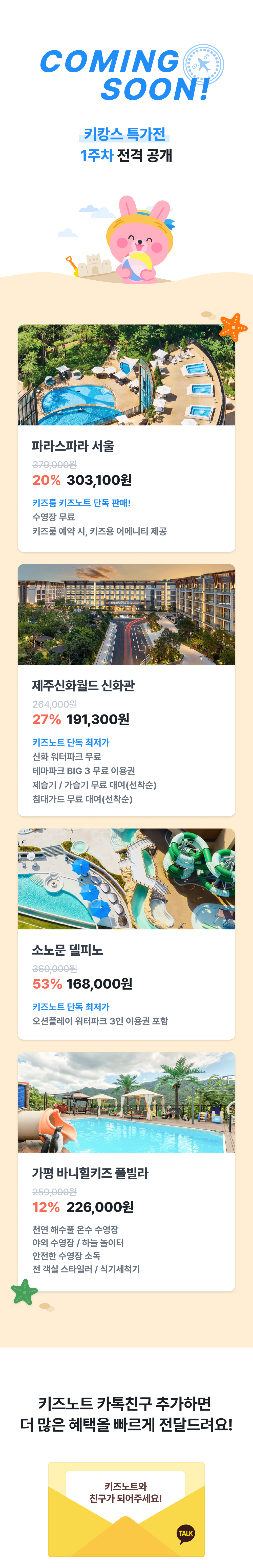 [키즈노트] 패밀리 숙소 오픈 기념 - 키캉스 특가전💙 (0) | 2023.07.03 |