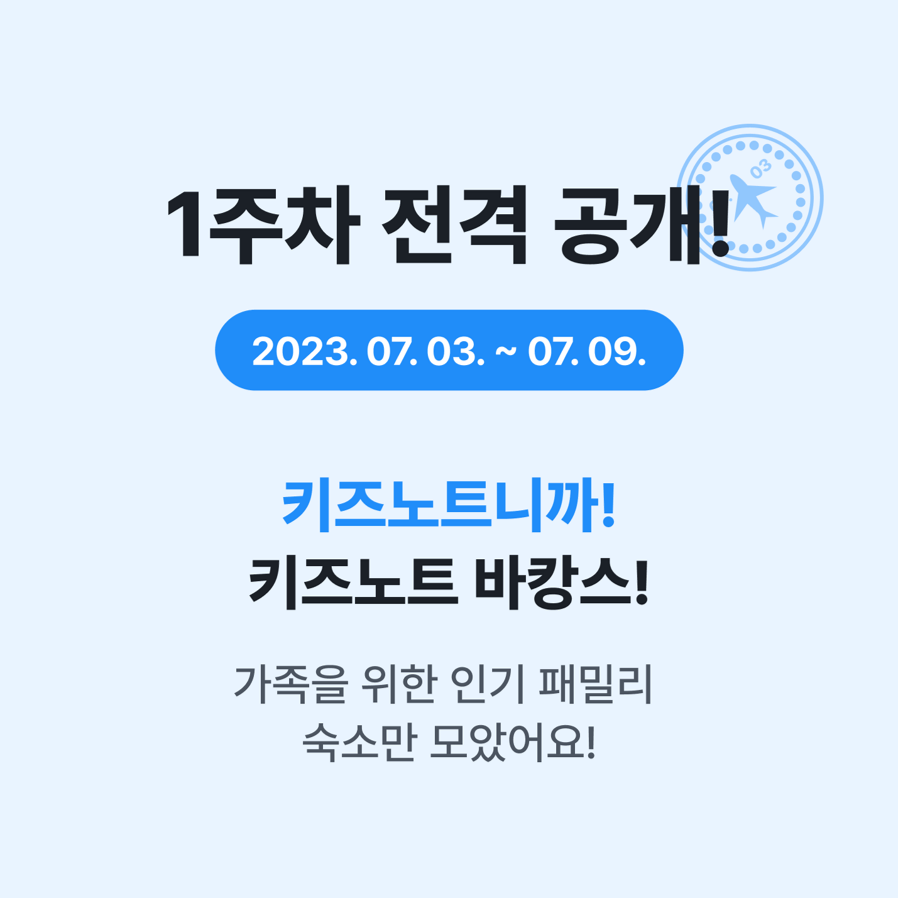 | [키즈노트] 패밀리 숙소 키캉스 특가전 : 2주차 공개✨ (0) | 2023.07.10 |
