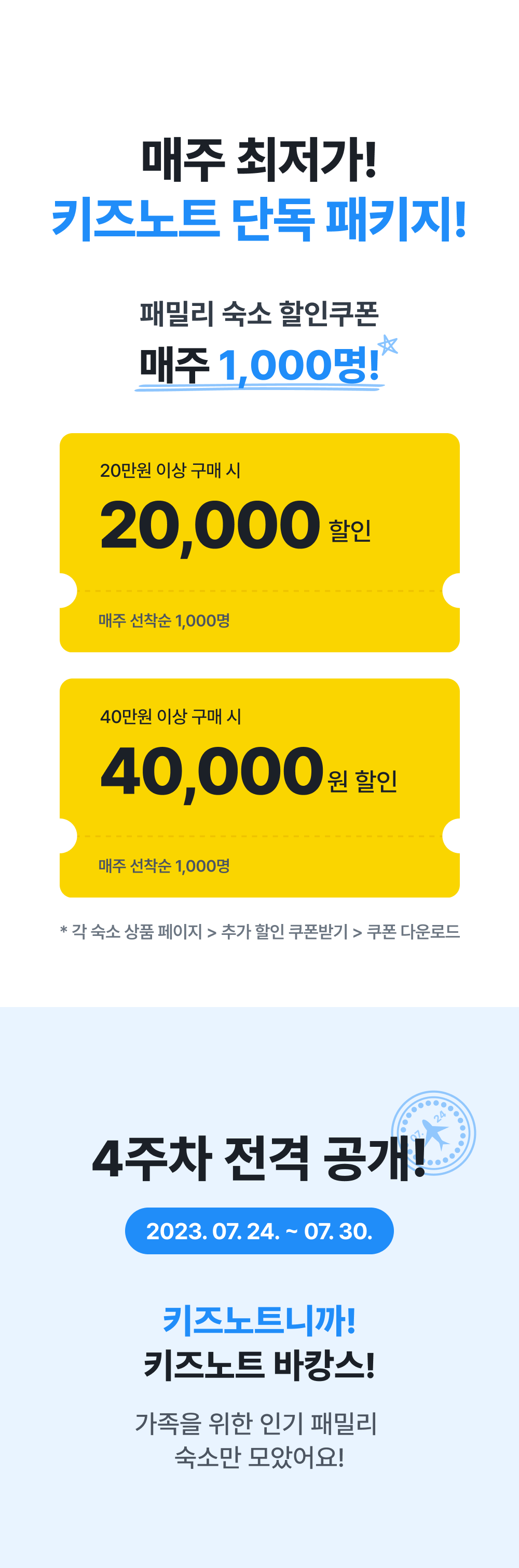 [키즈노트] 패밀리 숙소 키캉스 특가전 : 2주차 공개✨ (0) | 2023.07.10 |