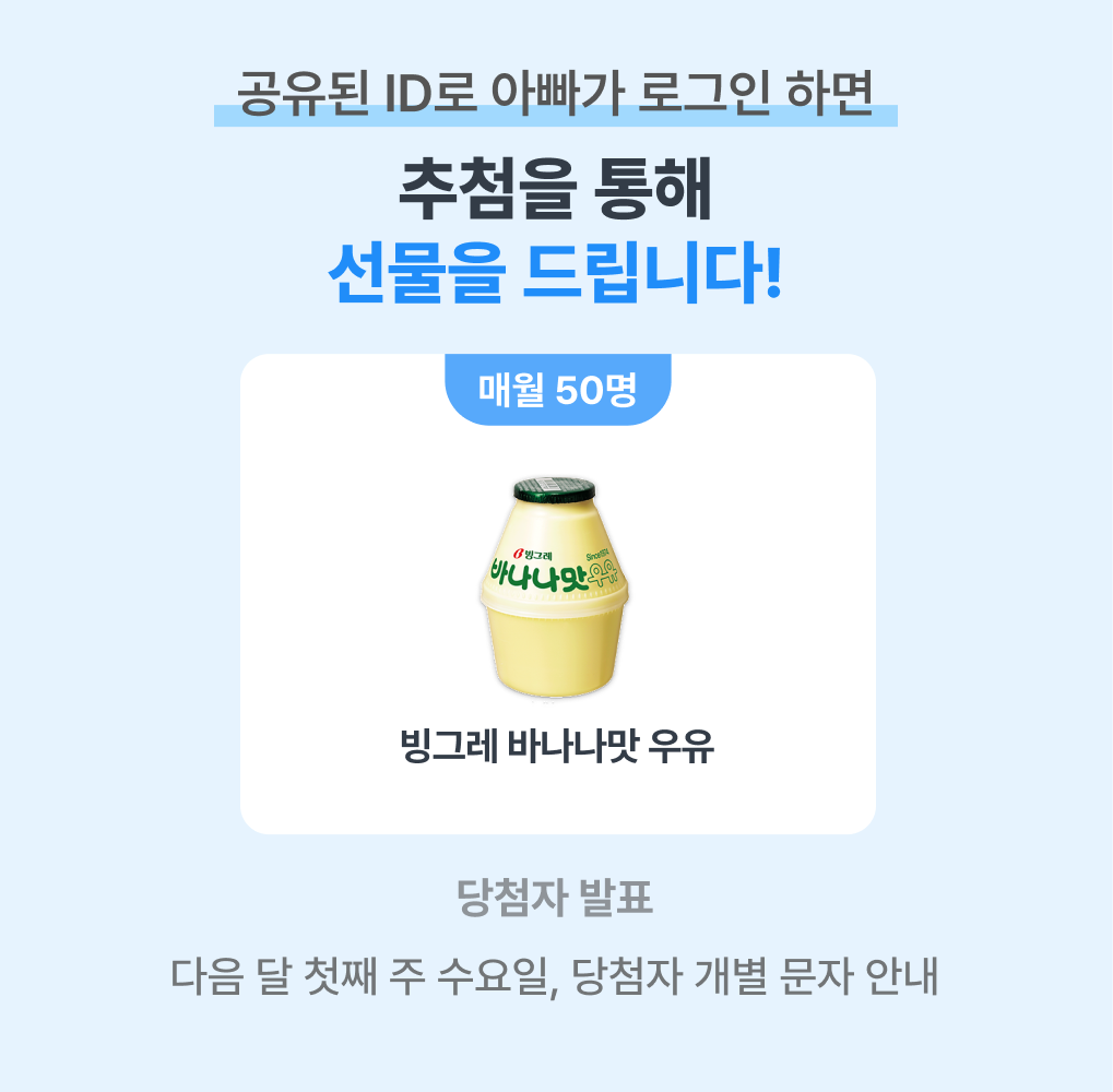 ✅ 경품 : 빙그레 바나나맛 우유 (매월 50명씩)