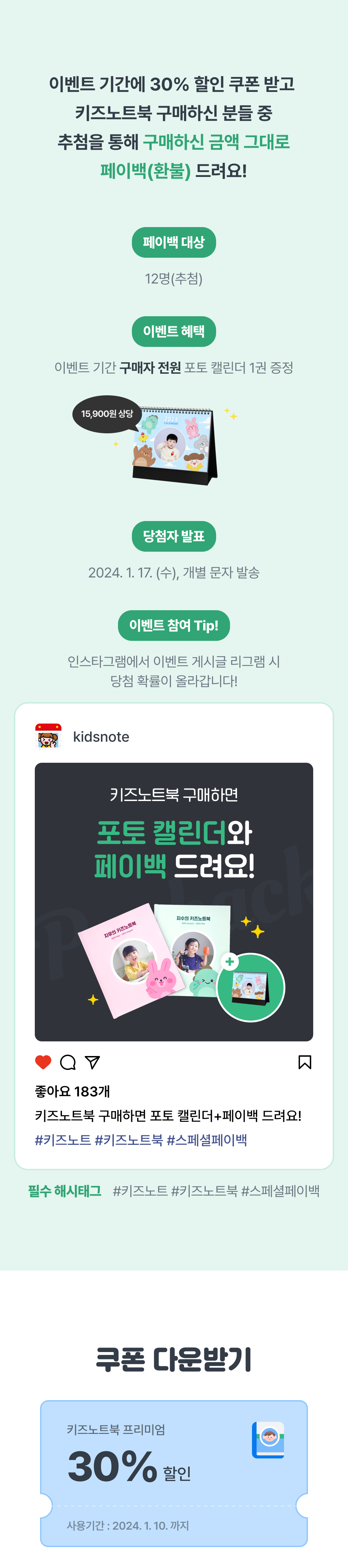 ✅이벤트 내용 : 키즈노트북 30% 할인 받고 구매하면, 포토캘린더 + 페이백 드려요!