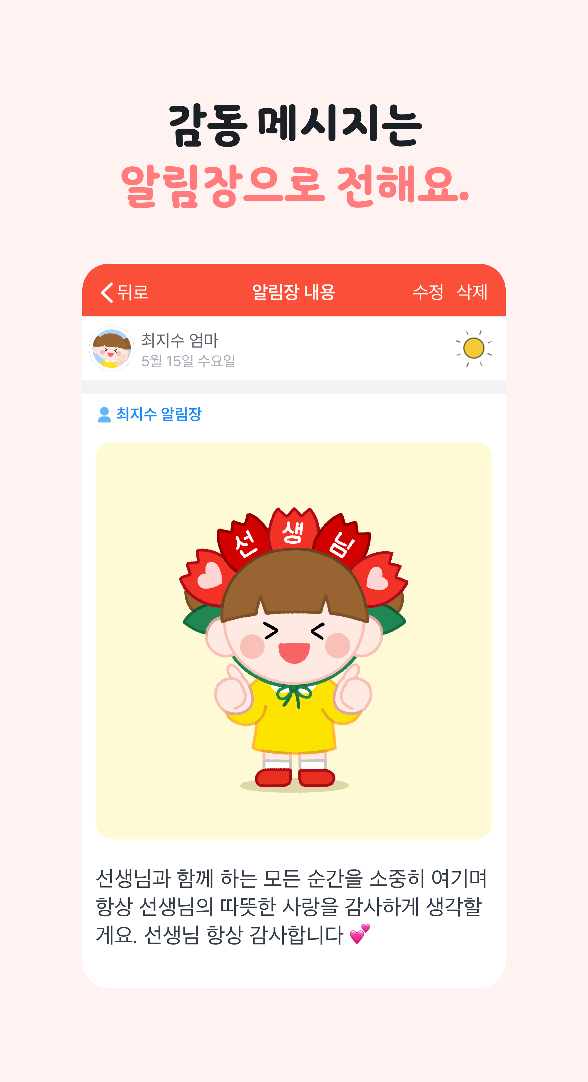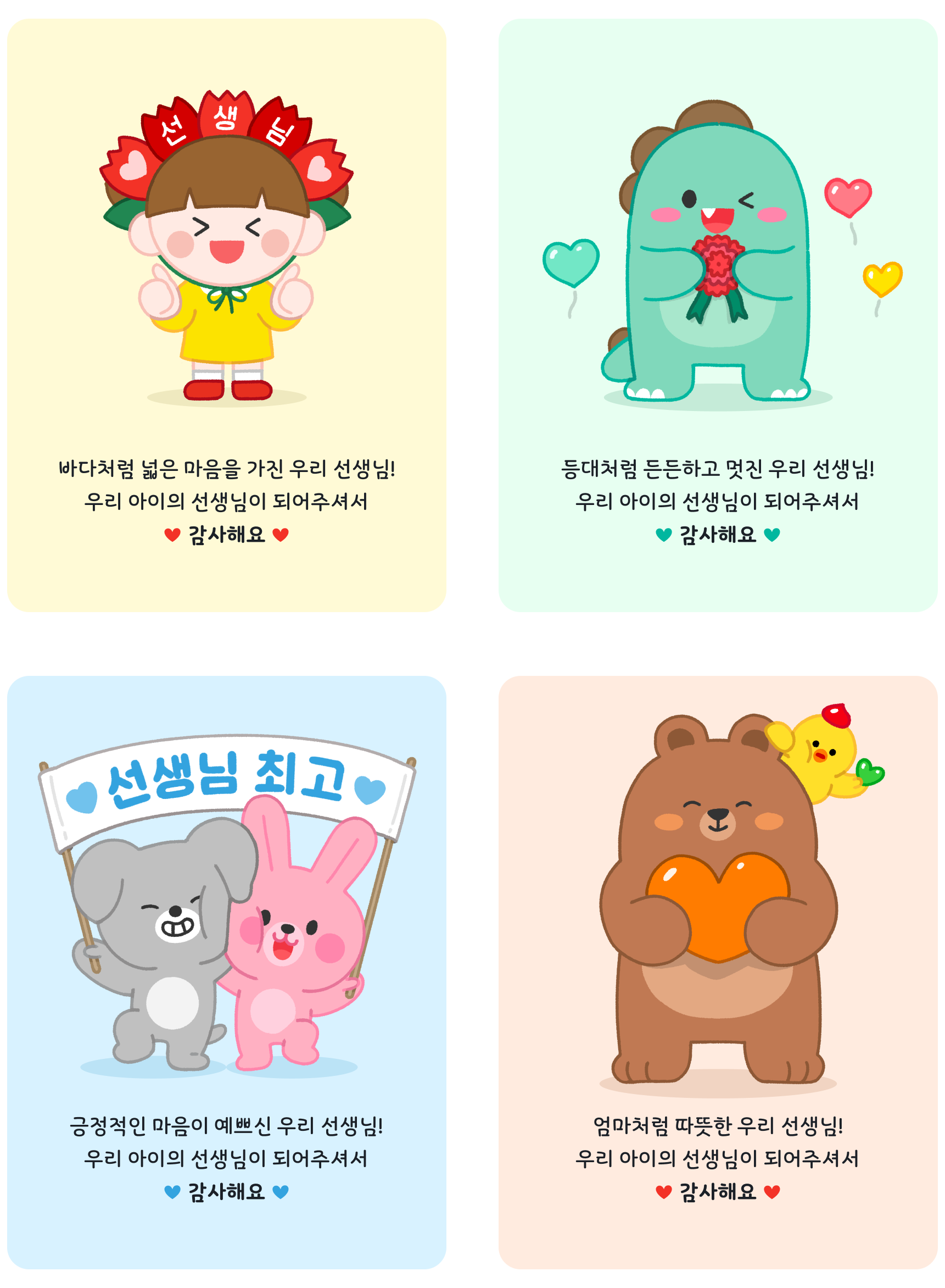 우리 아이들의 특별한 순간을 함께 만들어주시는 선생님께 키즈노트가 드리는 감사 인사 카드로 마음을 전해보아요💕
