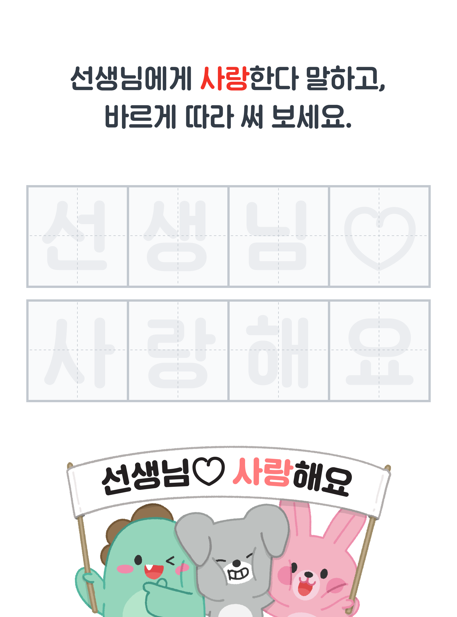 아이와 함께 선생님을 향한 감사 인사 문구 한자 한자 써 보아요✏️