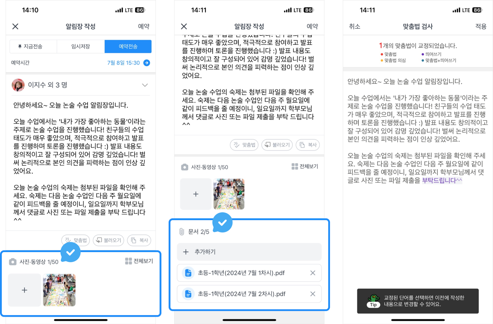 그리고, 글로만 알림장을 작성하는 것이 아니라