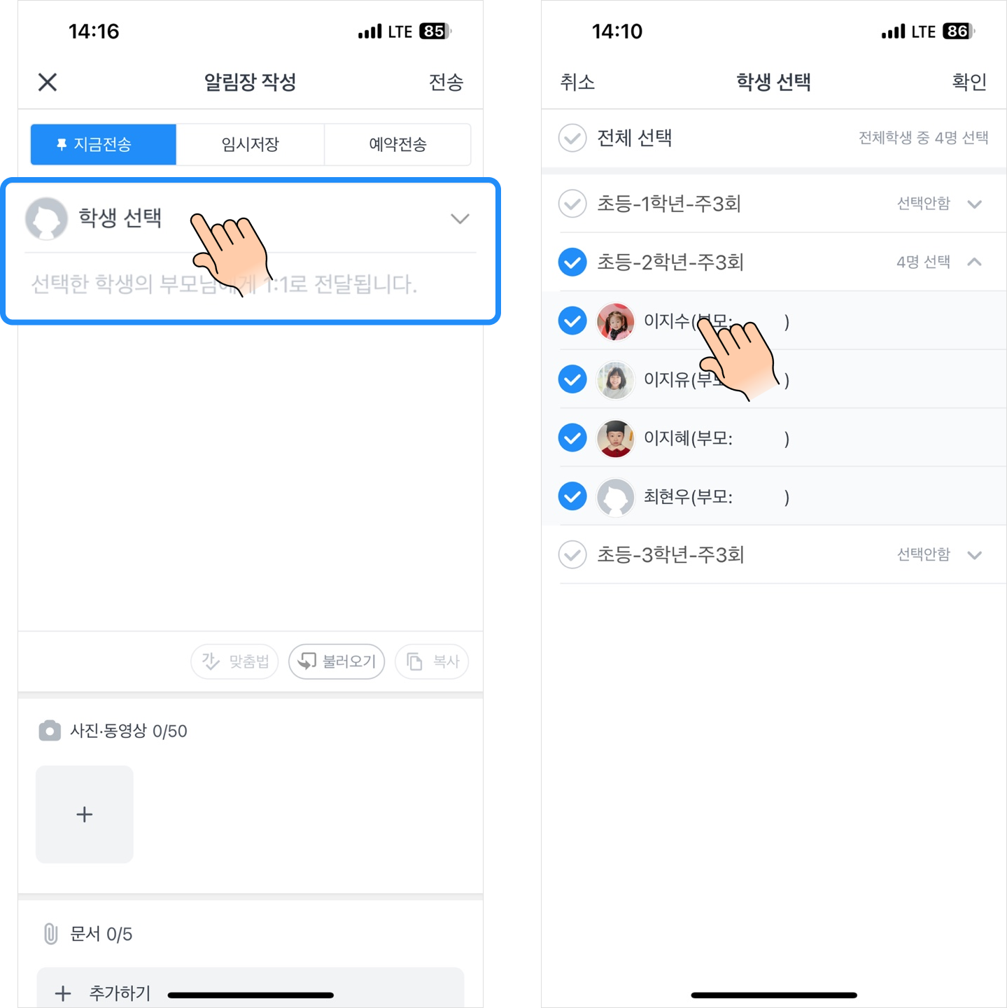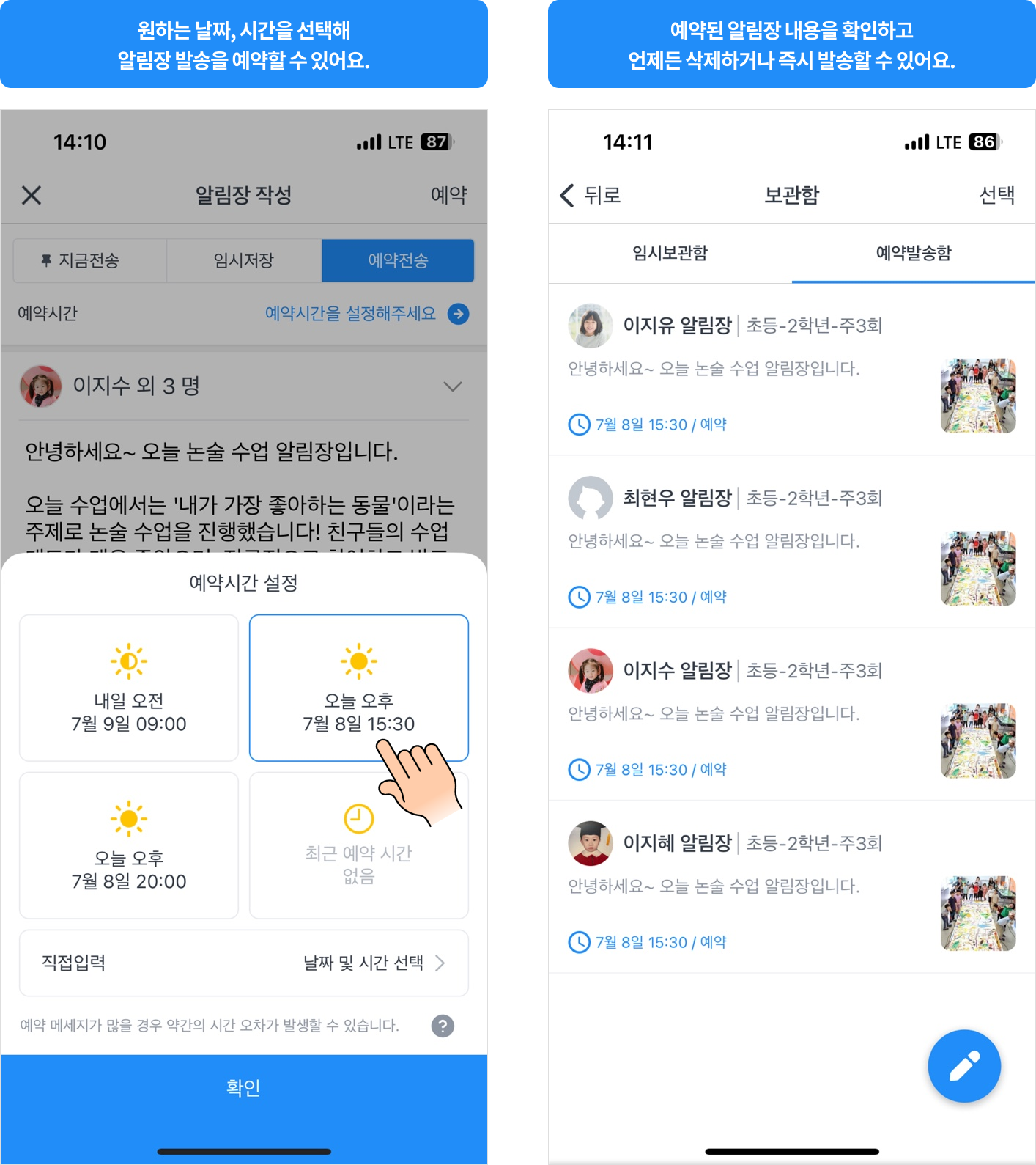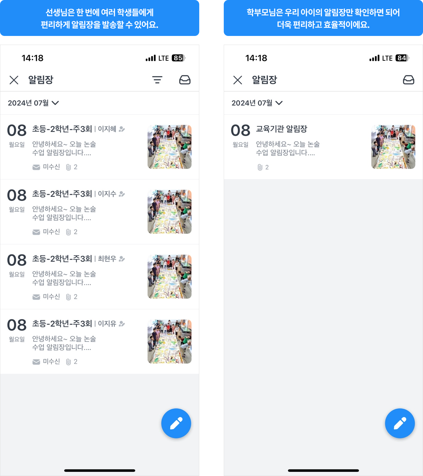 알림장을 발송할 수 있다는 점이에요!