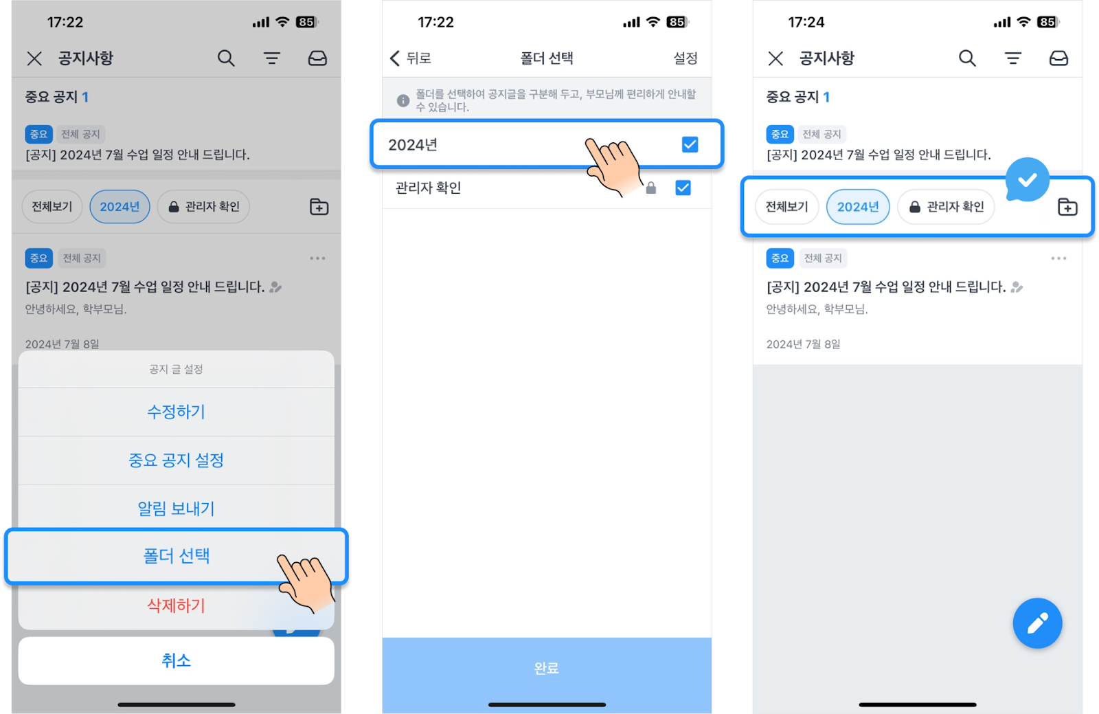 공지사항을 읽을 수 있도록 독려할 수 있어서