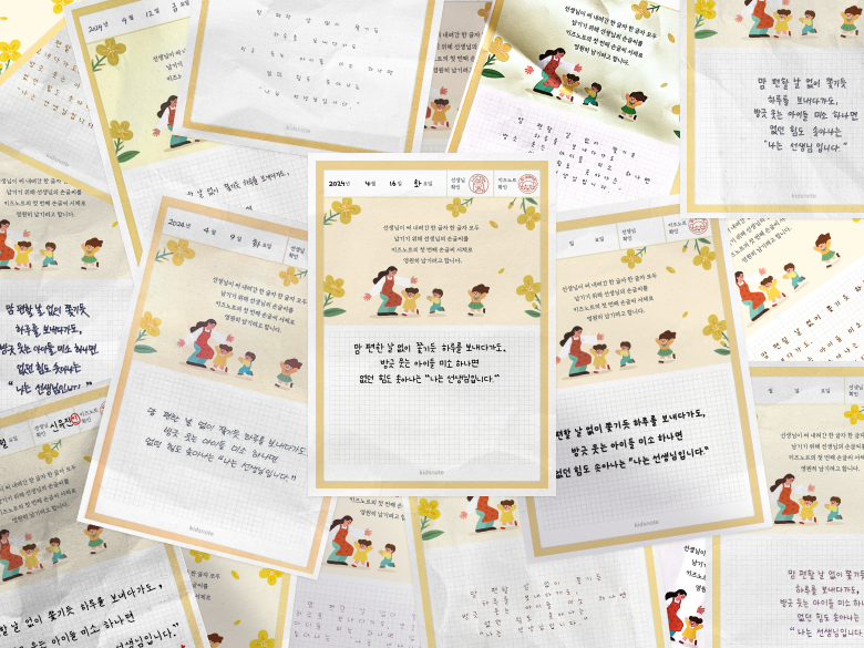20년 전 부모님들과 아이들의 성장의 기쁨을 손글씨로 주고받았던 그 시간을 기억할 수 있도록 해주셔서 감사해요! 키즈노트 최고~!!"-모O진 선생님-