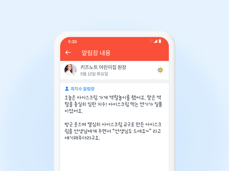 2024년 9월 10일, 키즈노트 알림장에